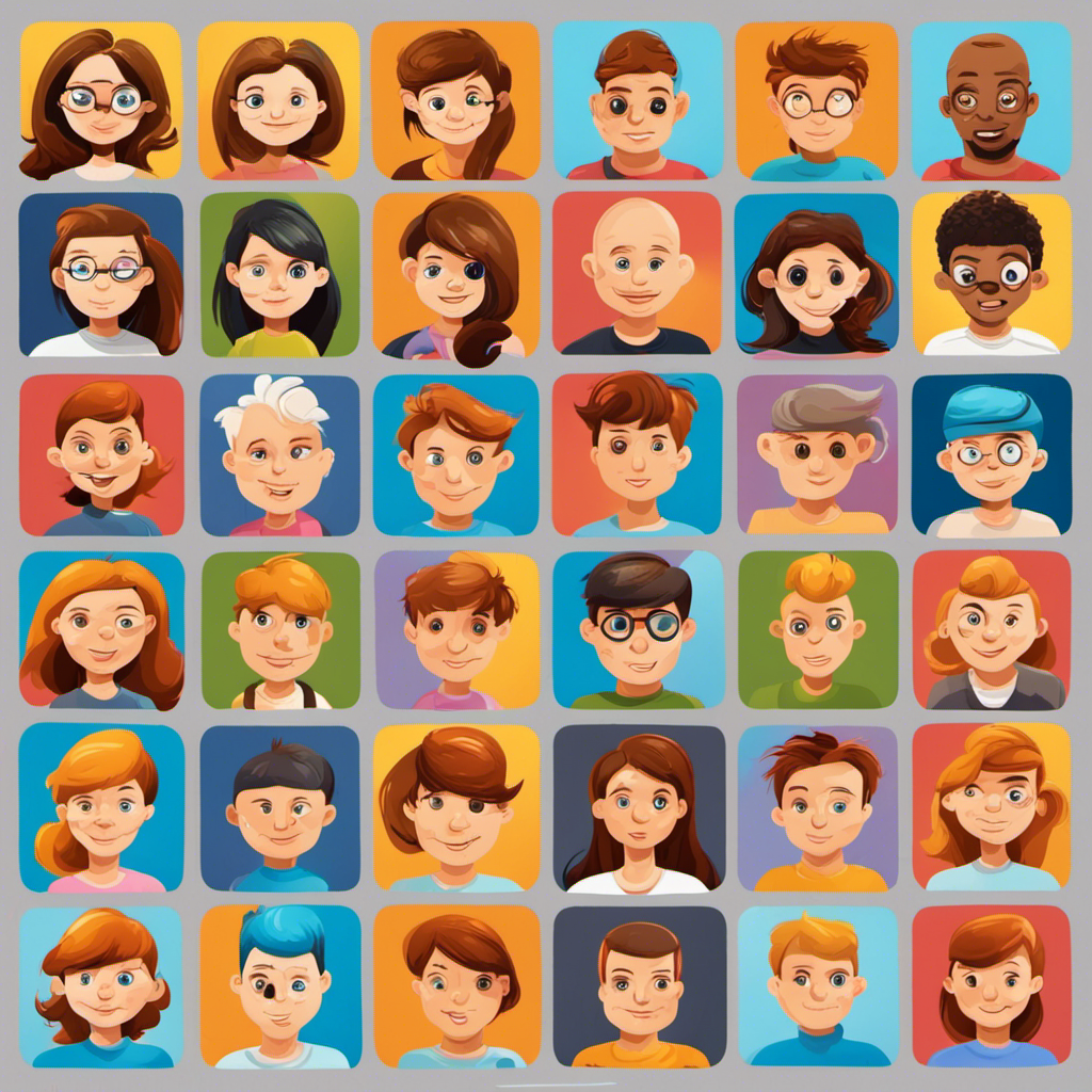 Because we knew we would like to showcase this demo at AWS events, we used only AWS Generative AI (GenAI) services. First, we tried to generate comic-like images, similar to the original game. Generating approximately 30 faces in the same artistic style is difficult. Here is a selection from the first round of queries.